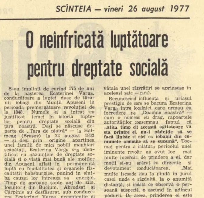 „Atâta timp cât această agitatoare va sta printre ei, nu-i nădejde să se facă linişte şi nici ca iobagii din comunele amintite să se supună. Mai multe iscoade stau la pândă în jurul casei unde e găzduită, la o anumită distanţă, şi îndată ce observă o persoană suspectă, o ascund în adâncul pădurii. De aceea, prinderea ei este foarte grea“, consemna un raport din 5 iulie 1844.